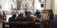 Julio Rubén Perea con sus sobrinos Marcelo y Braian, y Deolinda, llegaron desde Concepción, provincia de Tucumán.Salieron el pasado domingo a las 14.00, recorrieron 175 kilómetros caminando, para arribar en horas de la siesta del jueves 5.
