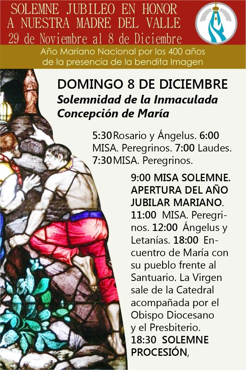 El domingo 8 de diciembre, la Solemne Procesión con la Imagen de la Patrona de Catamarca marcará el cierre de las fiestas en honor de la Inmaculada Concepción, en su advocación del Valle, y el comienzo de este tiempo de gracia especial.