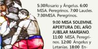 09:00 MISA SOLEMNE, presidida por S.E. Mons. Luis Urbanč, Obispo de Catamarca. APERTURA DEL AÑO JUBILAR MARIANO.
