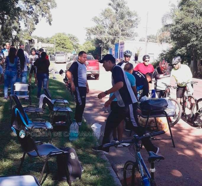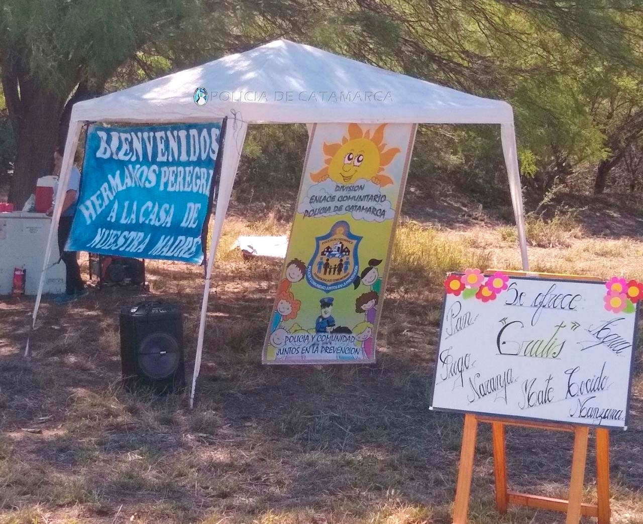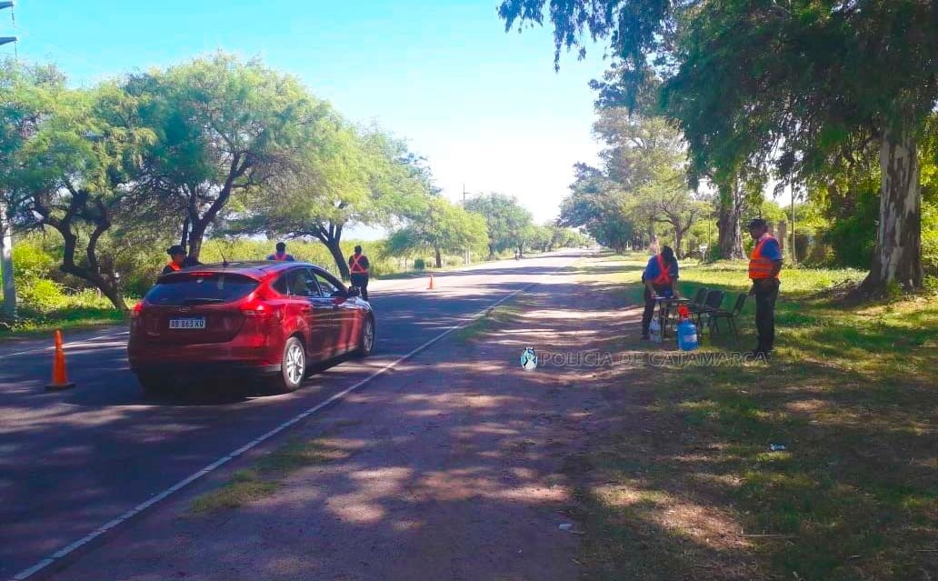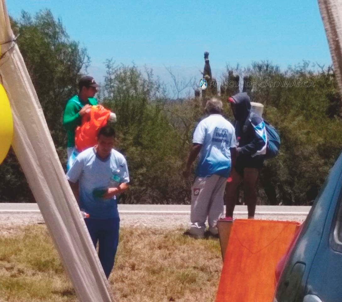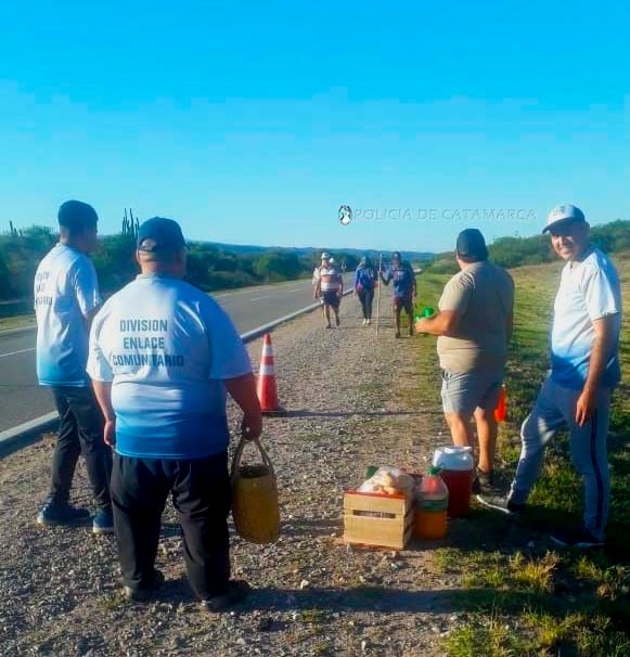 En tanto que efectivos de la Comisaría Departamental Fray Mamerto Esquiú, reciben a los peregrinos en la ruta provincial Nº 1, a la altura de Campanas del Rosario, ofreciéndoles agua fresca para su hidratación, a la vez que realizan controles vehiculares en la zona en vistas a cuidar a las personas que transitan por la zona y prevenir la siniestralidad vial.
