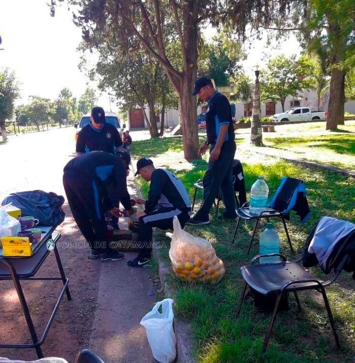 Asimismo, personal de la División Enlace Comunitario de la Policía de la Provincia hicieron lo propio en la ruta nacional N° 38, a la altura de la localidad de La Bajada, Paclin, donde asisten a todos aquellos que llegan al Valle Central, colaborando con el desayuno y refrigerio de media mañana.
