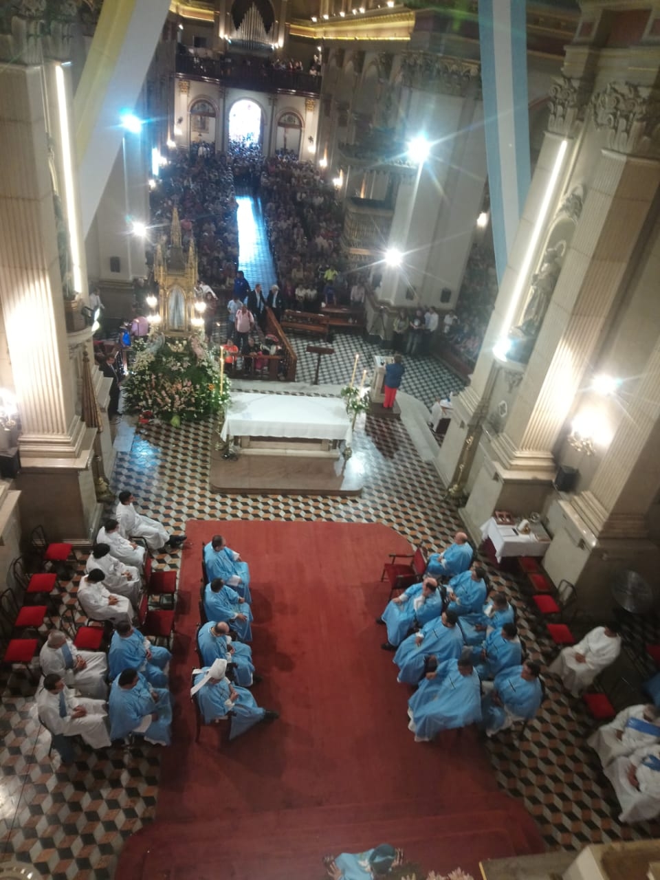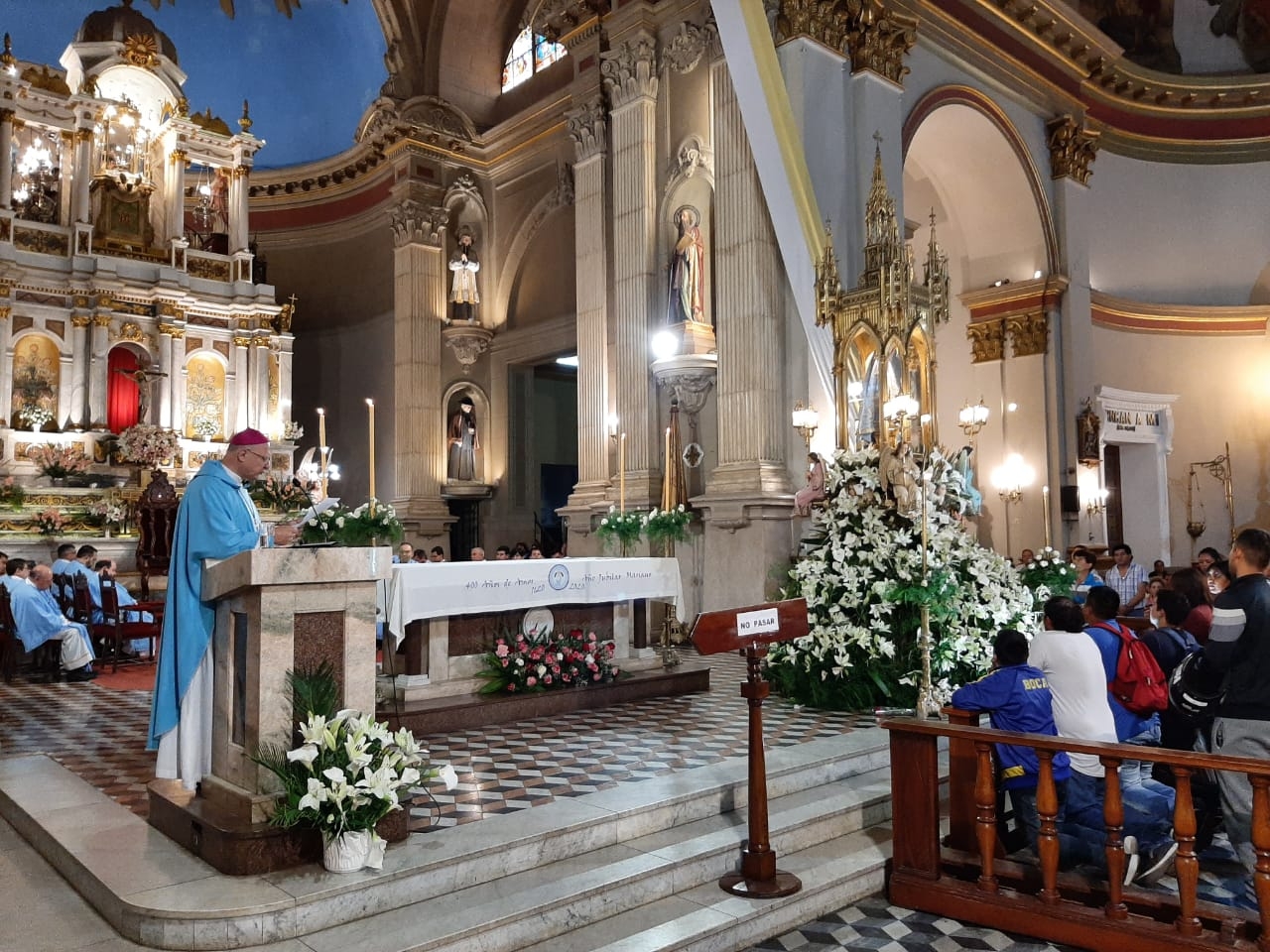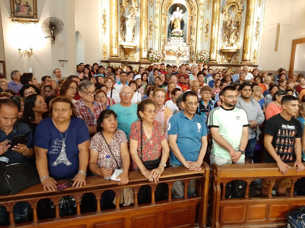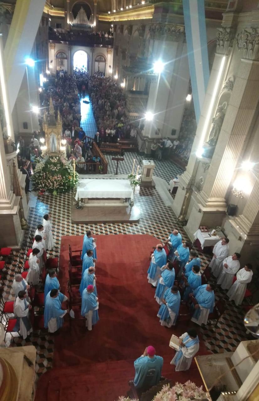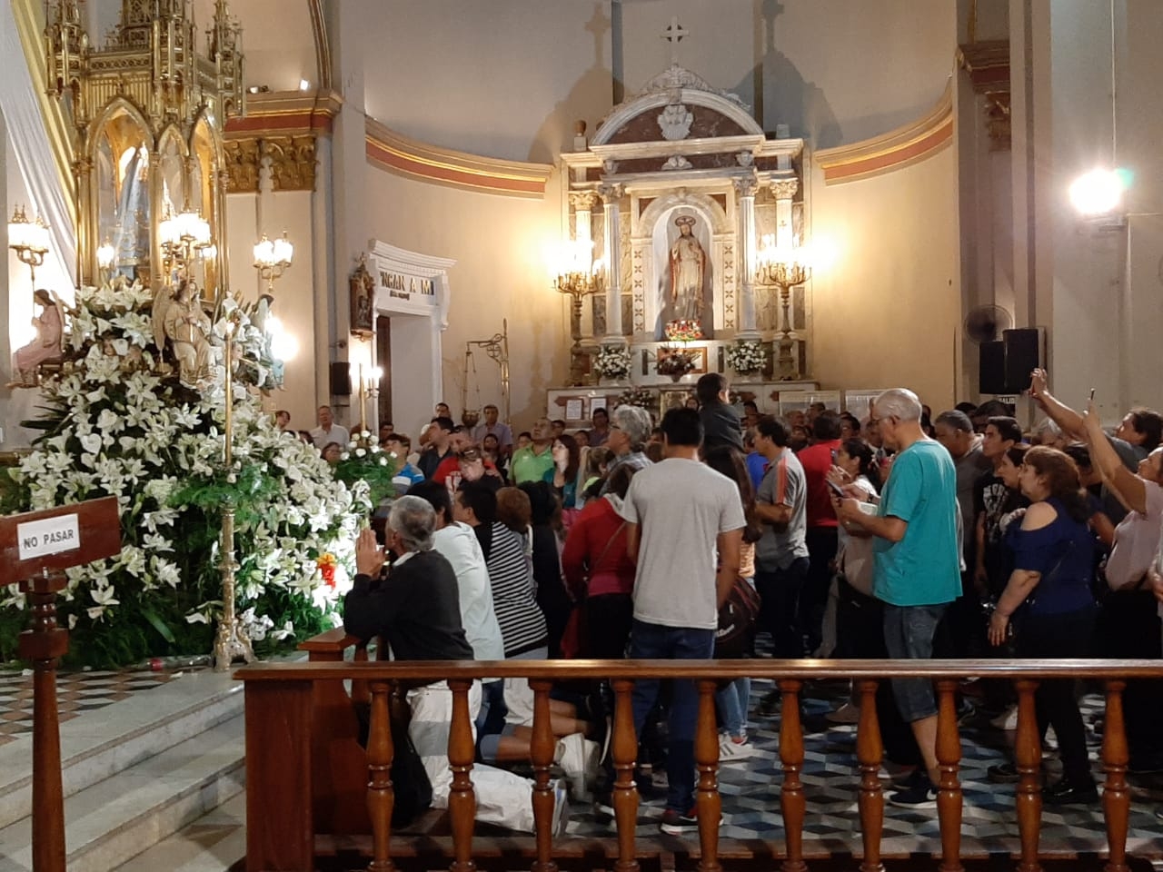 Una gran cantidad de devotos y peregrinos, que desbordó el Santuario Mariano, participó de la Eucaristía, en la que se pidió especialmente por el eterno descanso del alma de la madre del Pbro. José Antonio Díaz, Rector de la Catedral Basílica y Santuario de Nuestra Señora del Valle.
