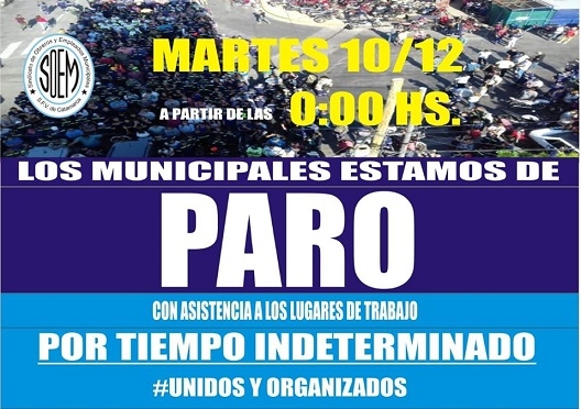 El gremio SOEM ratificó hoy el paro por tiempo indeterminado desde el martes 10 de diciembre, anunciado tras el fracaso de la última conciliación obligatoria que terminó la semana pasada.