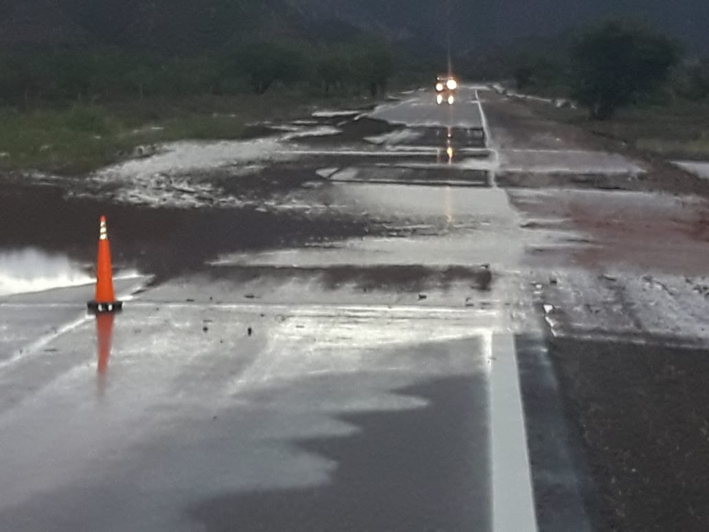 También los usuarios que deberán transitar con precaución en Ruta Nacional 60, entre Cerro Negro y Salado, Tinogasta (Km 1.257 – 1.269) por presencia de agua y material en badenes. También hay presencia de agua en calzada ja la altura del kilómetro 1.289 (Cuestecilla de El Carrizal).