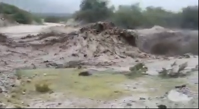 Las imágenes pertenecen al pie de la cuesta La Chilca, donde la creciente interrumpió el camino y llegó con mucha fuerza.