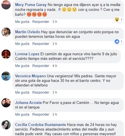 La página de Facebook de la empresa Aguas de Catamarca SPEM fue otro lugar donde los ciudadanos expresaron la bronca.