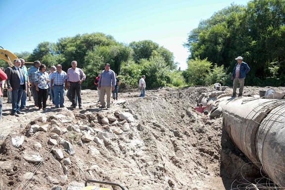 Lucía llegó hasta el cauce del río Miraflores acompañada por el ministro de Obras Públicas, Rubén Dusso; el Intendente de Riego de Capayán, Héctor Tomassi; el Secretario de Agricultura, Hugo Corpacci y el Presidente Provisorio del Senado Jorge Sola Jais. Allí pudieron observar cómo se trabaja para recuperar el sifón del canal de riego que fue destruida por la crecida del río en el último temporal.