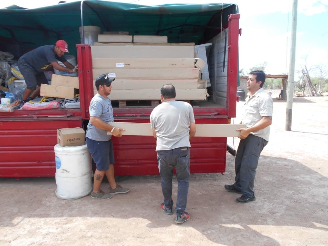 Entregaron colchones, cuchetas, cajoneras, placares, cocinas, heladeras, calefones, termotanques, sabanas, colchas, juego de baños con griferías, tanques para el agua, chapas, tirantes, mesas, sillas, entre otros elementos.