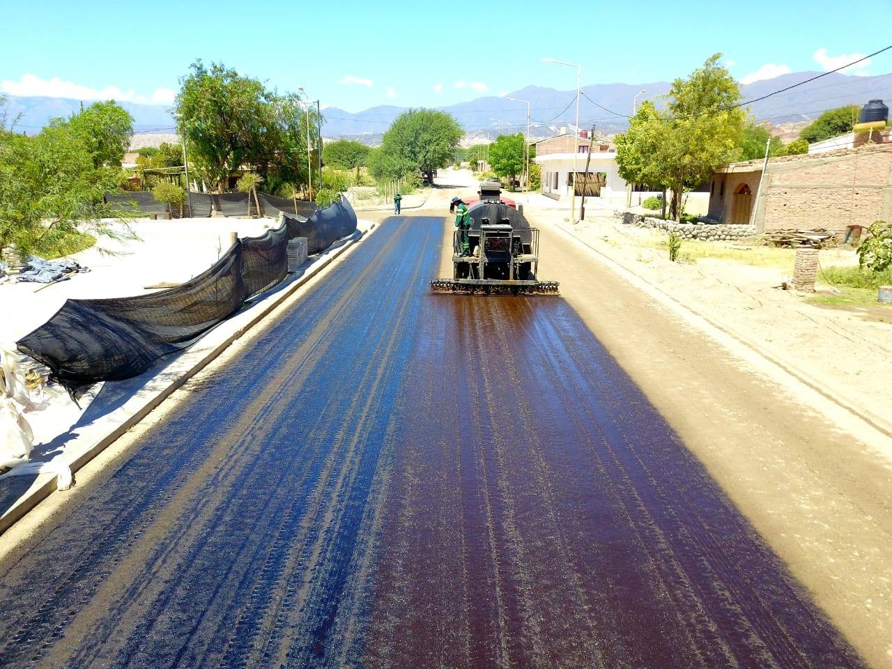 Este jueves por la tarde, el intendente, C.P.N Juan Pablo Sánchez junto al administrador de Vialidad Provincial, Ing. Hugo Naranjo, el secretario de Obras y Servicios Públicos, Arq. Guillermo Tarifa, y personal Vial, del municipio y de la provincia, estuvieron presentes en el riego de imprimación realizado en las calles Nuevo Centro, Siglo XX y Maestro Argentino, lo que corresponde a la obra de infraestructura vial alrededor de Plaza Las Américas.