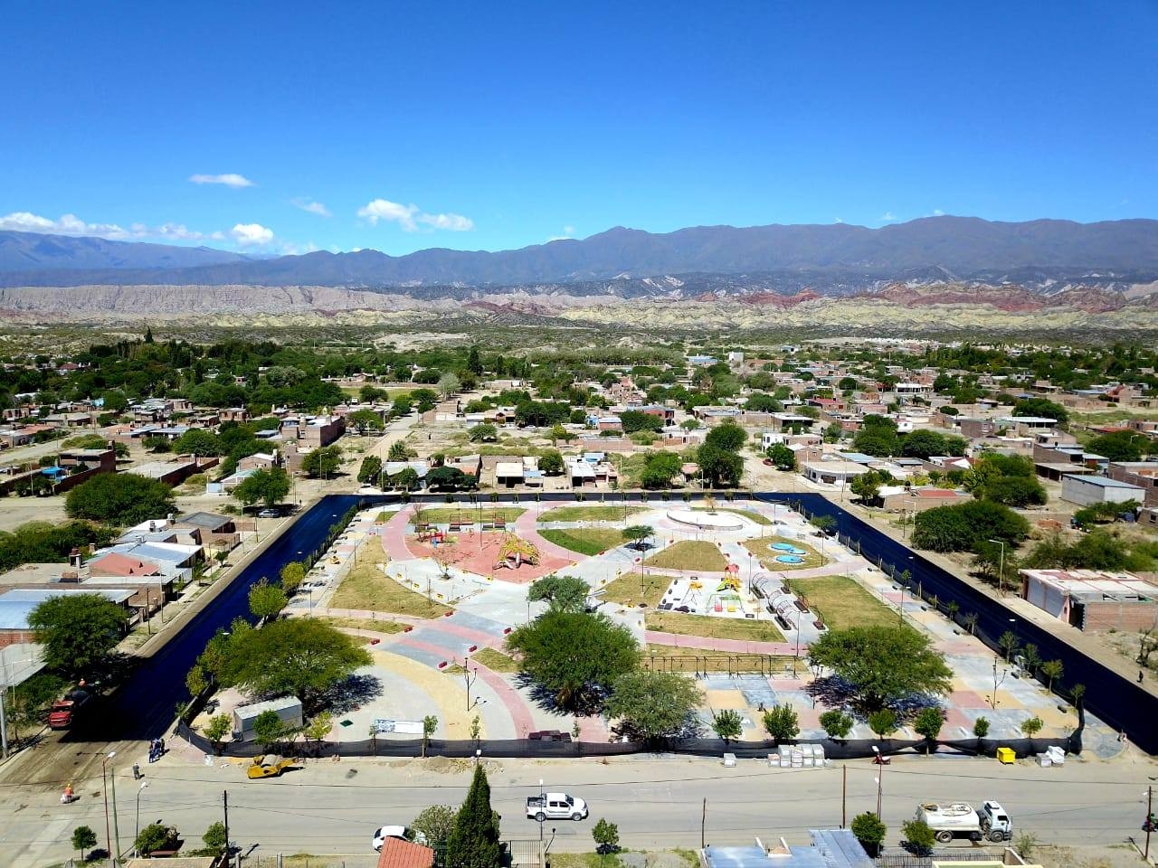 Asimismo, se realizaron obras complementarias, como cordones cunetas faltantes, en veredas del frente de la plaza, badenes de cruce de calle Perón como en la esquina de Nuevo Centro y de Maestro Argentino, reemplazando el hormigón dañado.