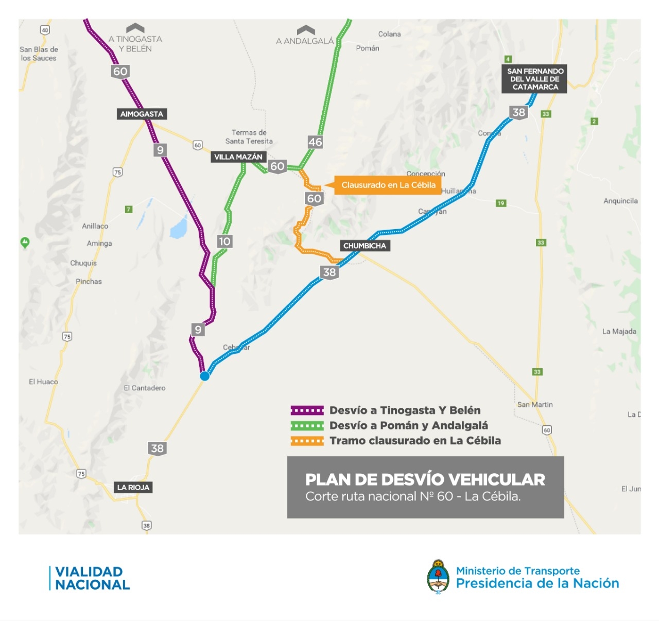 Desde prensa de Vialidad Nacional se dio a conocer un mapa con las conexiones que se deberán hacer para ir al Oeste provincial, tras el cierre de la cuesta de La Cebila por los daños sufridos luego del desborde del río San Jerónimo.
