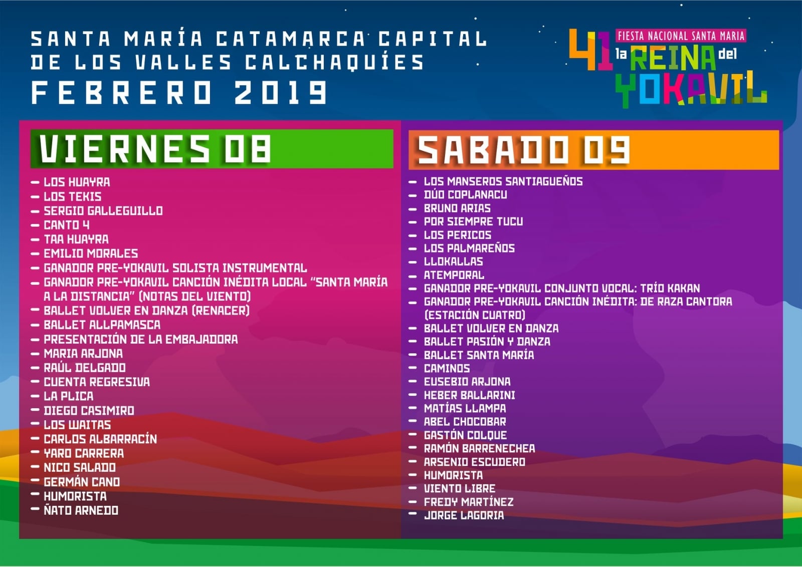 También actuarán figuras de primer nivel en el orden nacional como Los Nocheros, Sergio Galleguillo, Los Tekis, Los Manseros Santiagueños, Duo Coplanacu, Los Palmareños, entre otros.