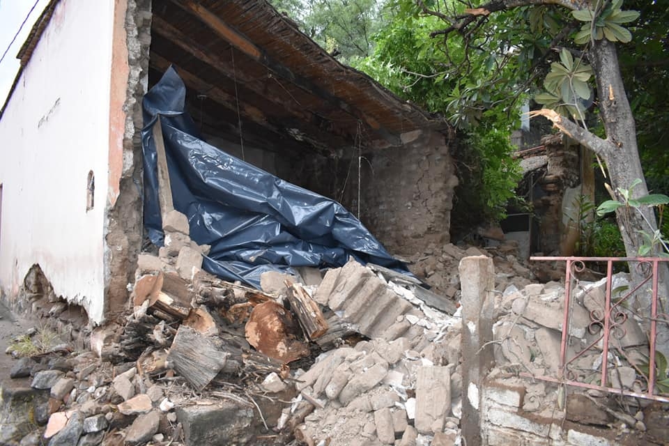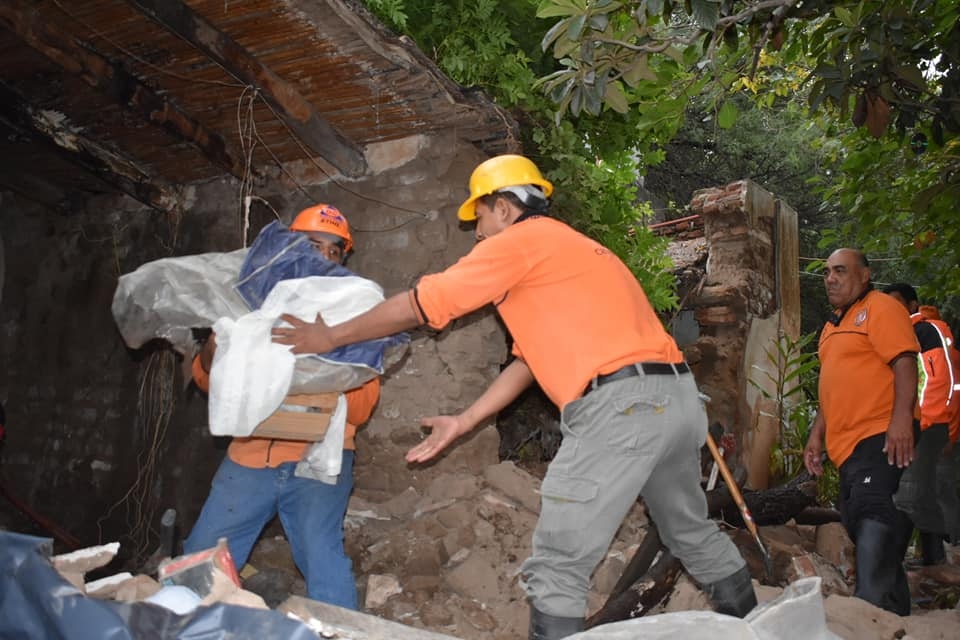 Se trata de una vivienda de adobe ubicada en la ruta 41, en la localidad de La Carrera, Fray Mamerto Esquiú, que no aguantó la incesante lluvia de los últimos días, por lo que cayó desplomada.