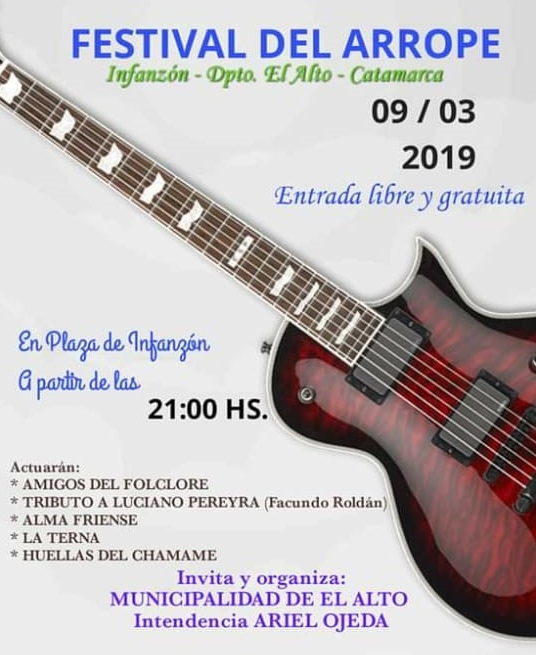 Se suspendió por las lluvias acaecidas en estos últimos días en todo el departamento. El festival se programará para el próximo fin de semana, más precisamente para el sábado 16, en la misma localidad y horario.