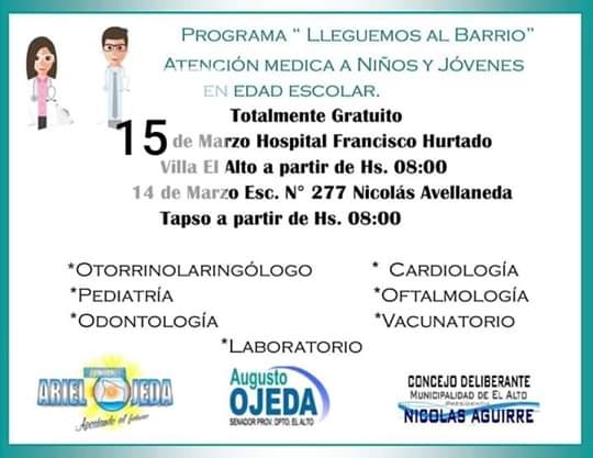 El Alto (C) - El programa "Lleguemos al Barrio" que estaba previsto para este miércoles 13 de marzo, se reprogramó para el próximo viernes 15 en el hospital de la Villa, a partir de las 8 horas.