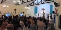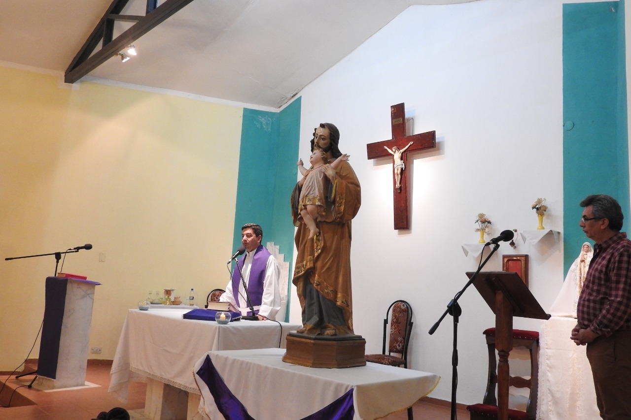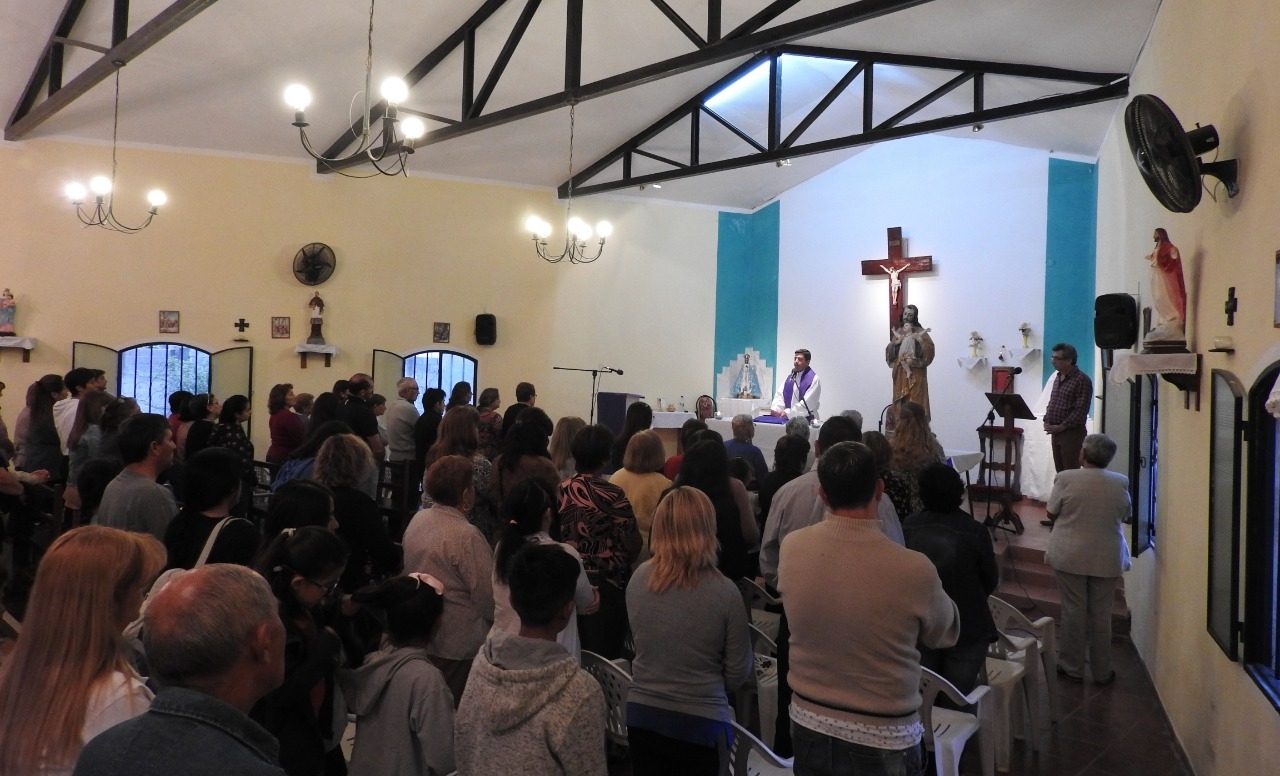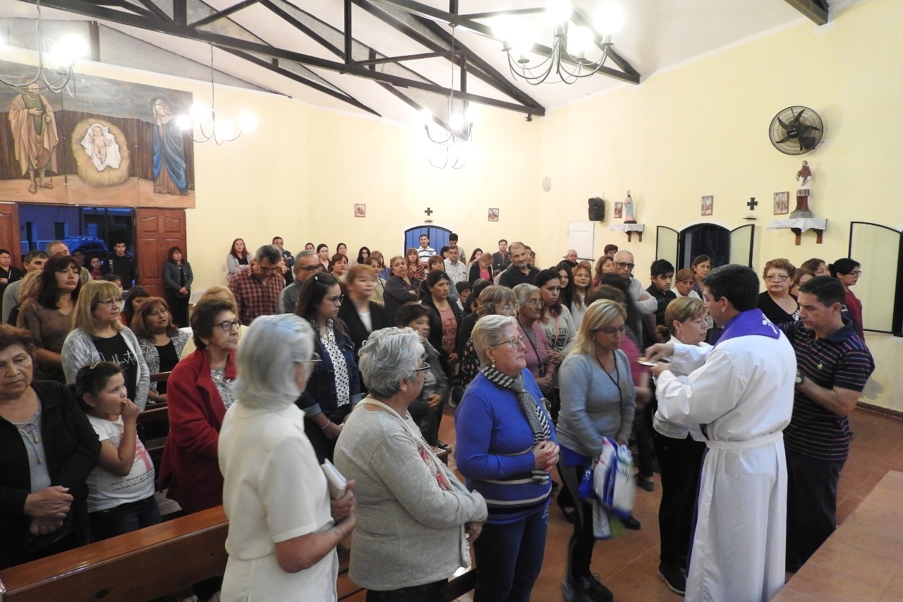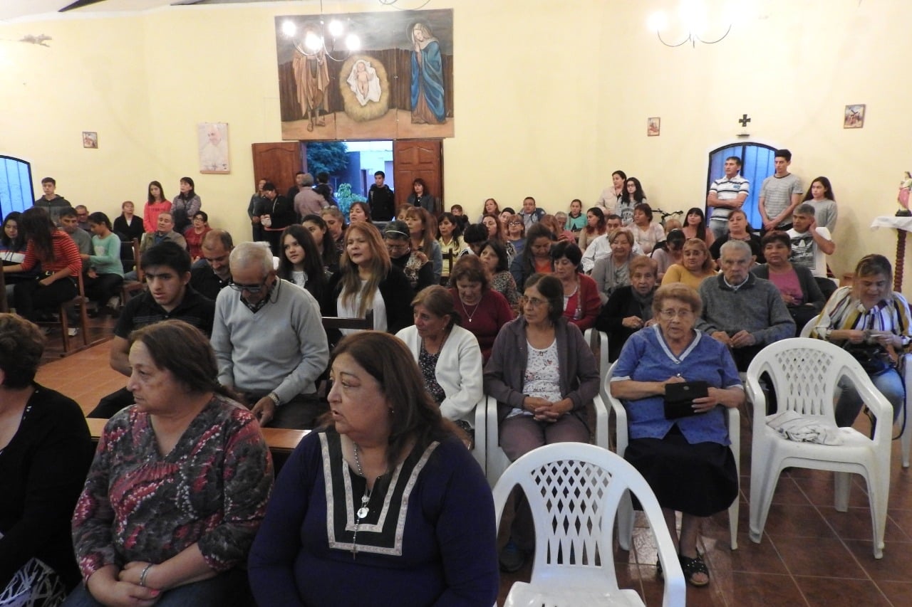 Numerosos fieles se congregaron en el primer día de la novena, que comenzó a las 18.30, con el rezo del Santo Rosario y posterior Misa, presidida por el Pbro. Domingo Chaves, párroco de San Roque.
