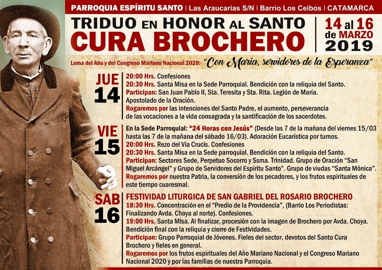 19:00- Santa Misa. Al finalizar, procesión con la imagen de Brochero por Avda. Choya. Bendición final con la reliquia y cierre de las festividades.
