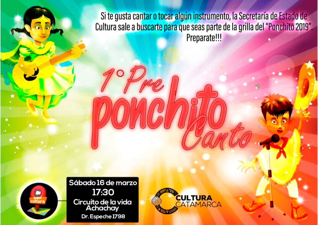 Cabe recordar que el certamen 1° Pre Ponchito Canto, surgió como una herramienta de inclusión y promoción cultural que otorgue a niños y adolescentes de toda Catamarca, la posibilidad de participar en el escenario del prestigioso “festival de los niños”, representando a su departamento de procedencia. Para ello, es que se vienen realizando las pertinentes convocatorias en distintas plazas de la ciudad Capital como también del interior provincial.
