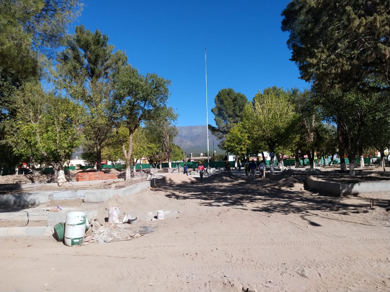 En lo que respecta al mástil de la plaza, el mismo presenta un juego de volúmenes. “El mástil central es el que quedó y llevará dos mástiles más, para la bandera provincial y la Wipala. El mástil lleva un juego de luces de colores y en la parte de atrás lleva un mural con relieve que lo estamos trabajando con artistas locales”, comentó la arquitecta y agregó que desde el área de producción, está manejando el trabajo de los espacios verdes y a fin de mes estarían iniciando con el trabajo de la colocación del césped.