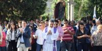 La columna procesional partió desde el barrio 70 Viviendas, desplazándose por las calles de la localidad hasta el atrio del templo principal, donde se ofició la Santa Misa, presidida por el Vicario General de la Diócesis, Pbro. Julio Quiroga del Pino, y concelebrada por el párroco, Pbro. Juan Olmos.