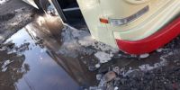 En su recorrido de hoy, el colectivo quedó atrapado en un importante pozo de la calzada. El mismo chofer filmó el video en el que, con una pala, debe cavar hasta lograr despejar las ruedas y así poder seguir el recorrido.