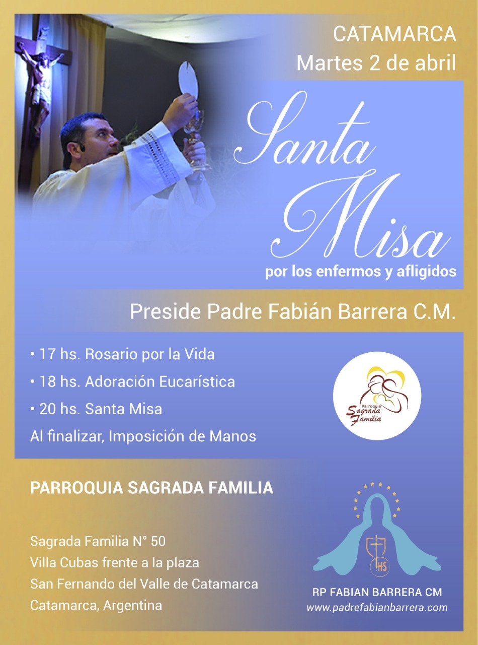 El martes 2 de abril, las actividades se desarrollarán en la parroquia de la Sagrada Familia, con sede en el barrio Villa Cubas, ciudad capital.