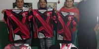 Para finalizar con su agenda, Luna entregó indumentaria deportiva a mujeres que participan en el fútbol femenino del departamento Pomán.