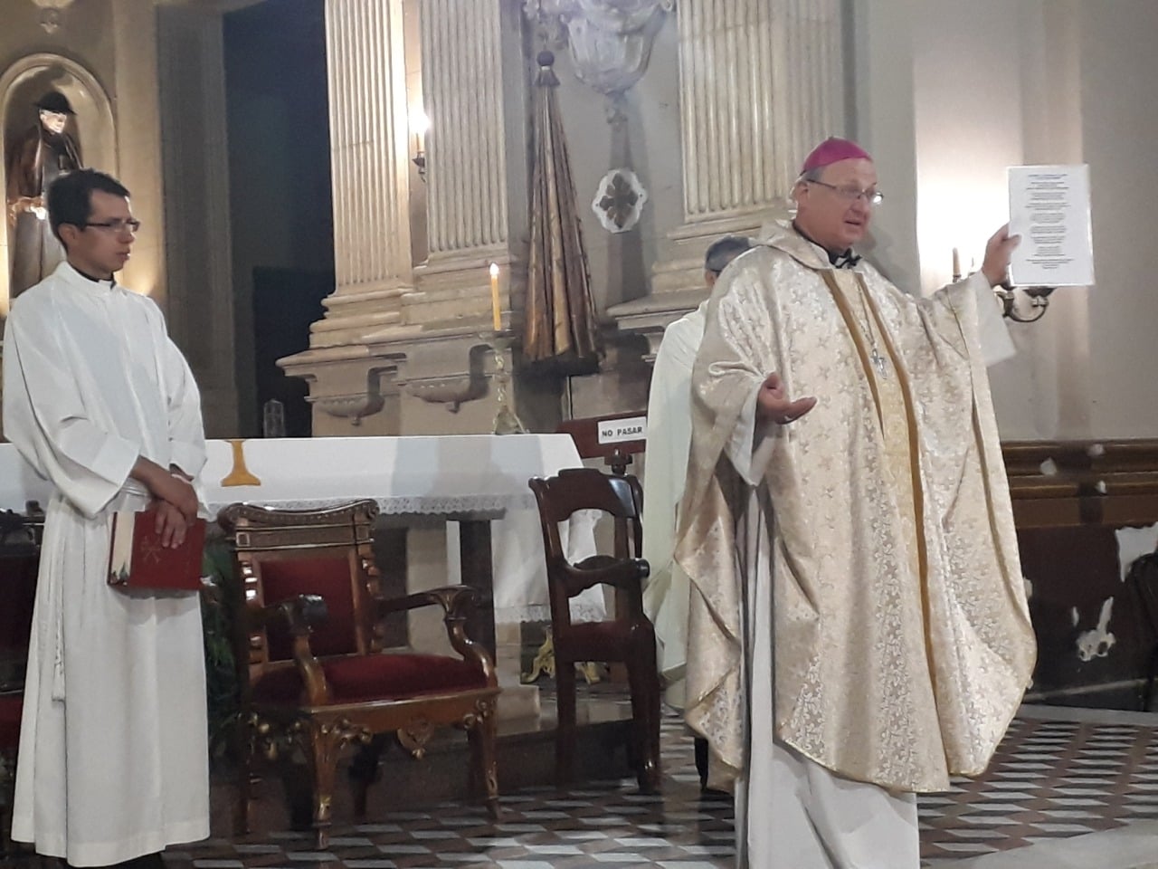 Durante su homilía, Mons. Urbanc manifestó: “En el marco de esta Cuaresma hacemos un alto en el camino para reflexionar y agradecer a Dios por el gran misterio de la Encarnación de su Hijo en las purísimas entrañas de la Virgen María. Este día lo conocemos como el Día de la Anunciación del Ángel a María y la Encarnación del Hijo de Dios, donde aparece la figura de María con su Sí incondicional a Dios. Este es un gran misterio de nuestra fe, que celebramos 9 meses antes del 25 de diciembre, fiesta de la Natividad”.