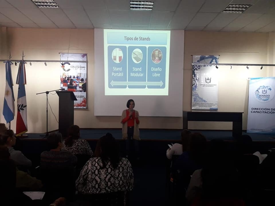 La capacitación concretada en el Salón Auditorio del Senado estuvo a cargo de la licenciada Valeria Sánchez Maldonado quien hizo hincapié en puntos claves a la hora del armado de un stand, tales como definir el espacio, público, colores a utilizar para atraer al cliente y distribución de los elementos.