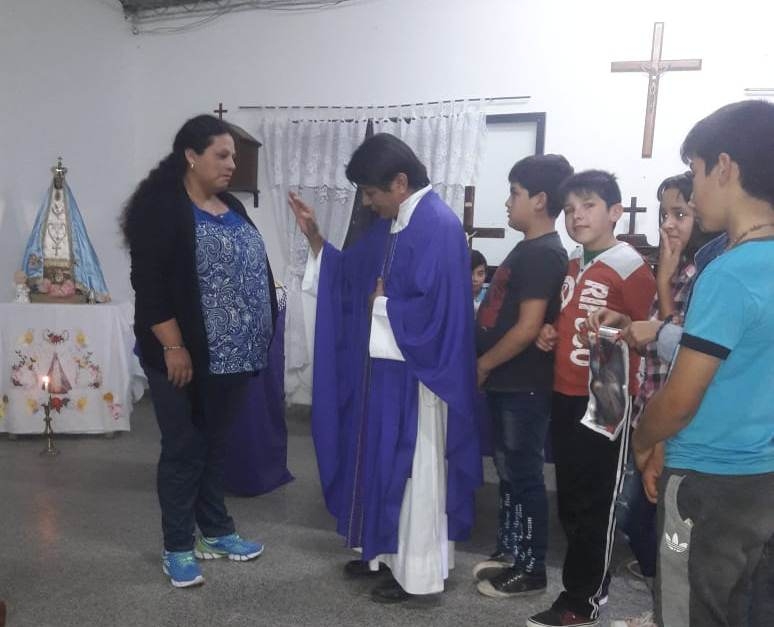 Finalizada la Santa Misa, se hizo una oración por las mamás y se ofreció una torta.