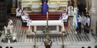 Antes de finalizar la celebración eucarística, el Obispo y los sacerdotes rodearon el féretro con los restos mortales del Padre Bulacio y rezaron por el eterno descanso de su alma, a los pies de Nuestra Madre del Valle.