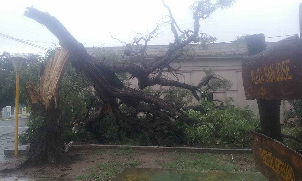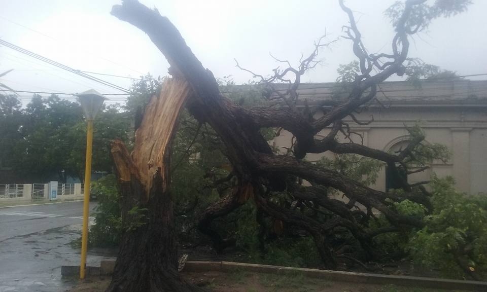 Se trata de una centenaria Tipa que no aguantó el temporal que se desató en la mañana de este viernes y terminó por partirse por completo.