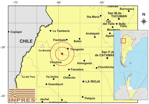 Epicentro: 159 Km. al NO de La Rioja; 206 Km. al O de San F. Del Valle De Catamarca; 36 Km. al SO de Tinogasta -28.274 (lat) -67.831 (long)