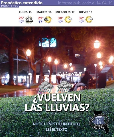 Este lunes 15 comenzaremos con inestabilidad, pues se espera que un sistema frontal llegue desde el sur trayendo cielo nublado y precipitaciones en gran parte de la provincia. Las mayores probabilidades de precipitaciones se ven entre la tarde y la noche sobre las regiones Centro y Este de la provincia. Para la región Oeste se ve sólo cielo mayormente nublado.