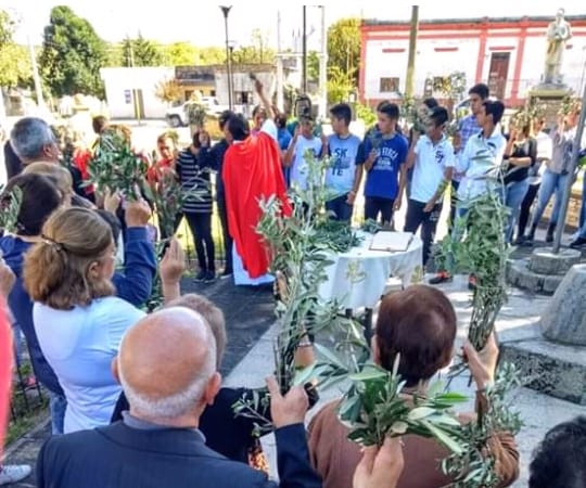 Por la tarde, en la capilla Nuestra Señora del Huerto se ofreció la eucaristía, previa bendición de ramos, con participación de las comunidades de Jesús de la Divina Misericordia, Calera del Sauce, y Nuestra Señora del Valle, La Pampa.