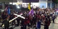 A continuación, comenzaron la peregrinación hacia el Calvario. Una larga fila de jóvenes que coparon gran parte de la calle, con la asistencia de la Policía de la Provincia, marcharon a paso firme realizando tres paradas en las que escribieron mensajes de esperanza, ofrecieron al cuidado de la Virgen María a personas de su interés y oraron por el personal policial apostado en la caminera, a cargo de la protección la gente en esta Semana Santa.