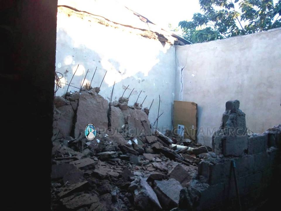 Ese lugar de la vivienda, sufrió importantes daños materiales, por lo que los policías solicitaron la presencia de personal de Defensa Civil, quien realizó tareas de su especialidad.