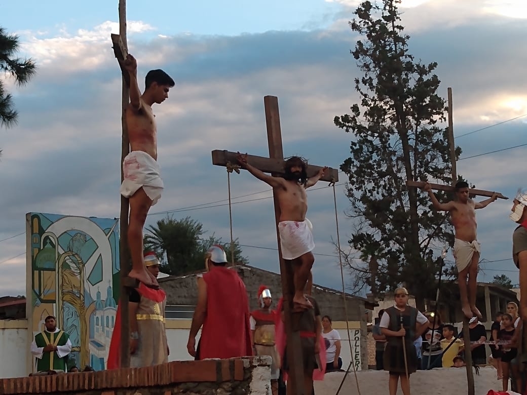 Con la participación de más 150 personas, un gran despliegue de iluminación, sonido y escenografía, combinado con el vestuario de la época, el Grupo de Expresiones Artísticas de Fray Mamerto Esquiú ayudó a revivir el Camino de la Cruz que hizo Jesús para salvarnos.