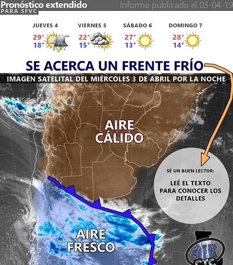 Por ejemplo, en las zonas desérticas de Antofagasta de la Sierra (región de la Puna) solamente se percibirá un descenso de temperatura recién el viernes y quizás vientos del oeste, pero en las regiones Este, Centro y Oeste percibiremos no sólo el descenso de temperatura, sino también las lluvias, el cielo cubierto y el viento de dirección sur.