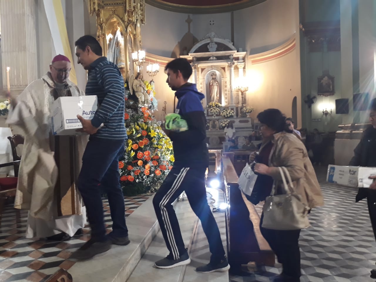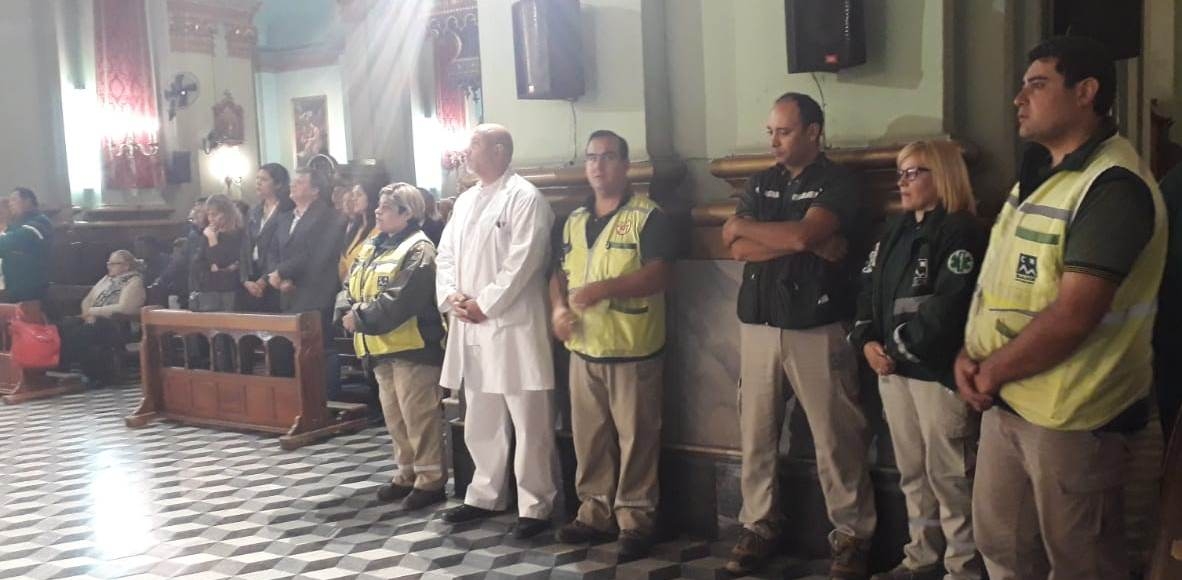 Los trabajadores del mundo de la Salud proclamaron la lectura del día y acercaron al altar las ofrendas, consistentes en alimentos no perecederos, agua, entre otros elementos, que servirán para la atención de los hermanos peregrinos.