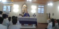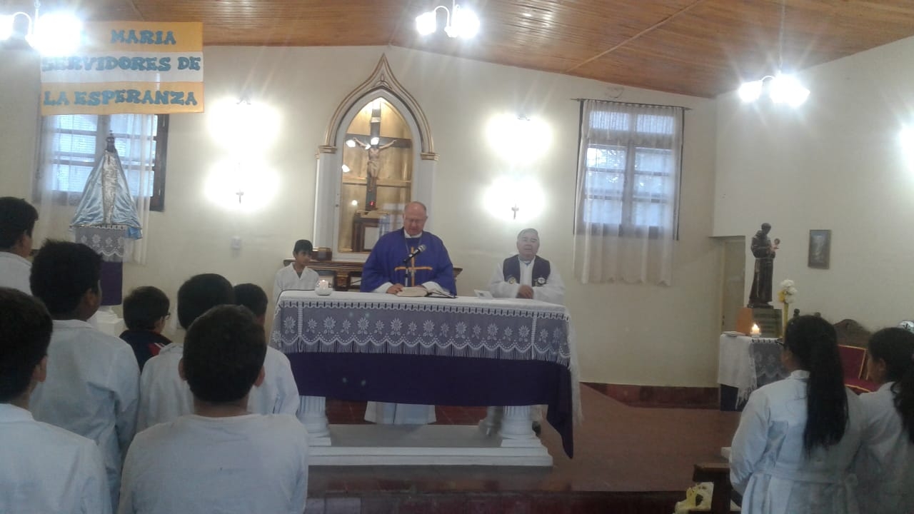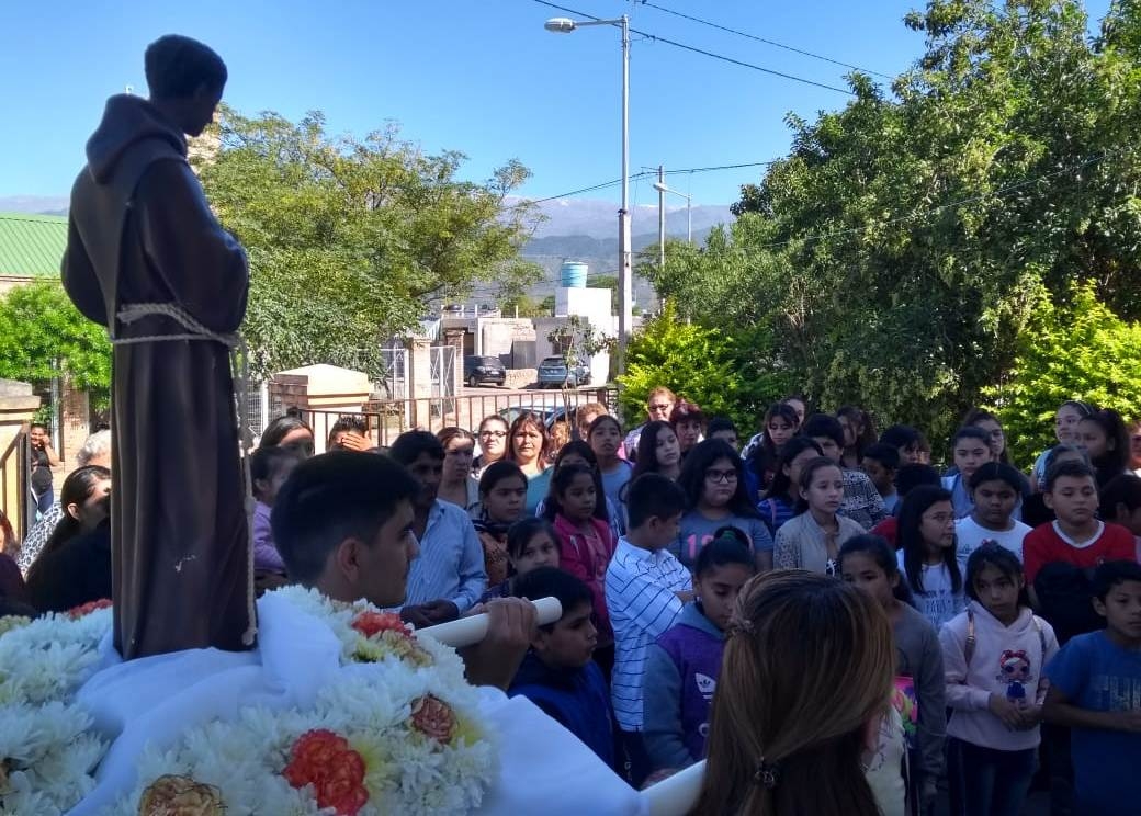 El pasado viernes 5 de abril, en el segundo día del triduo en honor al Santo Patrono, el Obispo Diocesano, Mons. Luis Urbanc, visitó la comunidad y celebró la Santa Misa en la que fueron alumbrantes el nivel primario y secundario de la Escuela Municipal N° 3 Gustavo Levene, del barrio Eva Perón.