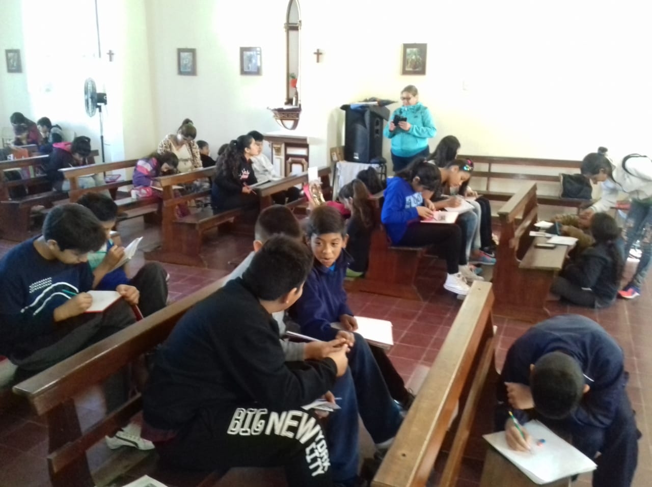Los niños de entre 9 y 13 años realizaron dibujos alusivos, que fueron expuestos el día de la procesión.