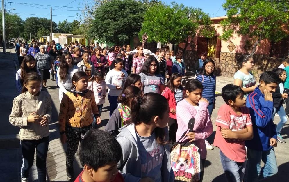 La Santa Misa y la procesión por las calles del barrio Eva Perón fueron presididas por el párroco de la Santa Cruz, Pbro. Julio Ávalos