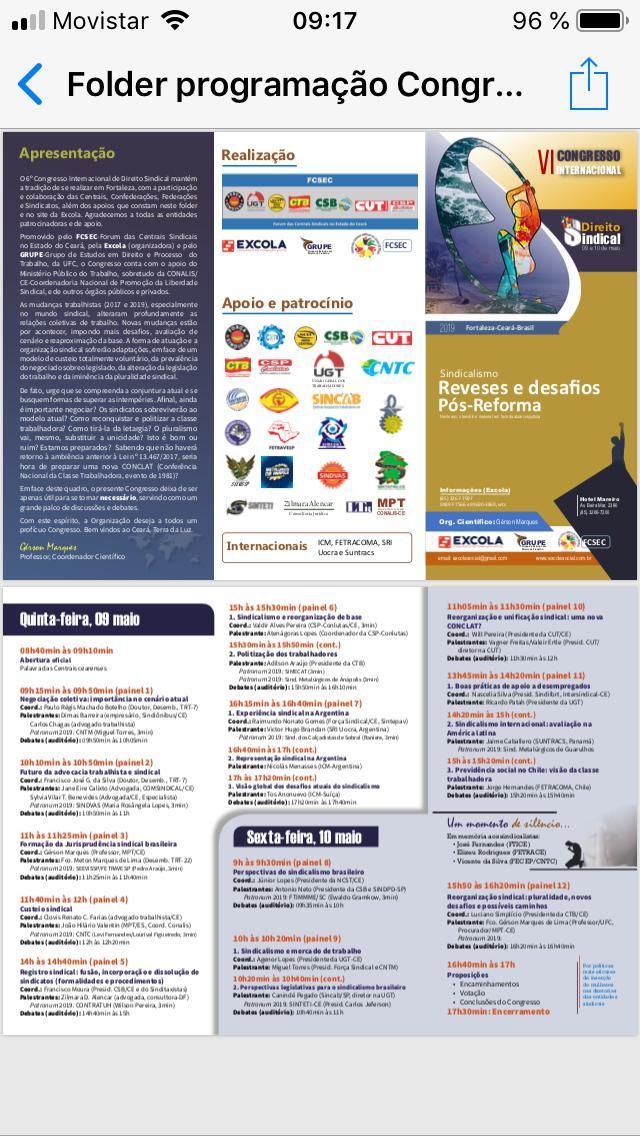 Sobre la temática de “Sindicalismo, Reveses y Desafíos post reforma”, el evento fue promovido por el Foro de Centrales Sindicales del estado de Ceará, a pedido del Grupo de Estudios en Derecho y Procesos Laborales, para abordar “los cambios en materia de legislación y derechos laborales ocurridos en el vecino país en los años 2017 y 2019”.