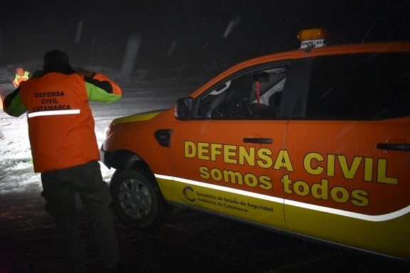 La dirección de Defensa Civil recorre en este momento la cumbre del Cerro Ancasti, donde se registra desde esta tarde, una intensa nevada a causa de la ola de frío polar que afecta a esta zona de la País.