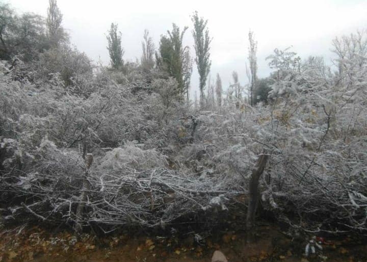 Aunque en menor cantidad que la registrada los cerros Ambato y Ancasti, Palo Blanco amaneció hoy cubierta de un manto blanco, y un paisaje diferente al que estamos acostumbrados a ver.