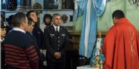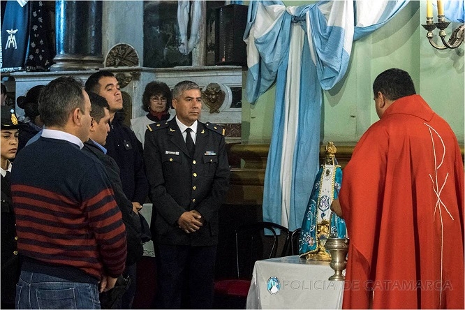 Antes de la bendición final, el Presbítero Humberto Carrizo bendijo el nuevo manto que viste la imagen de la Virgen del Valle, que custodia la guardia de la Comisaría Seccional Quinta, cuyo personal la trasladó nuevamente a su Gruta al culminar la ceremonia religiosa.
