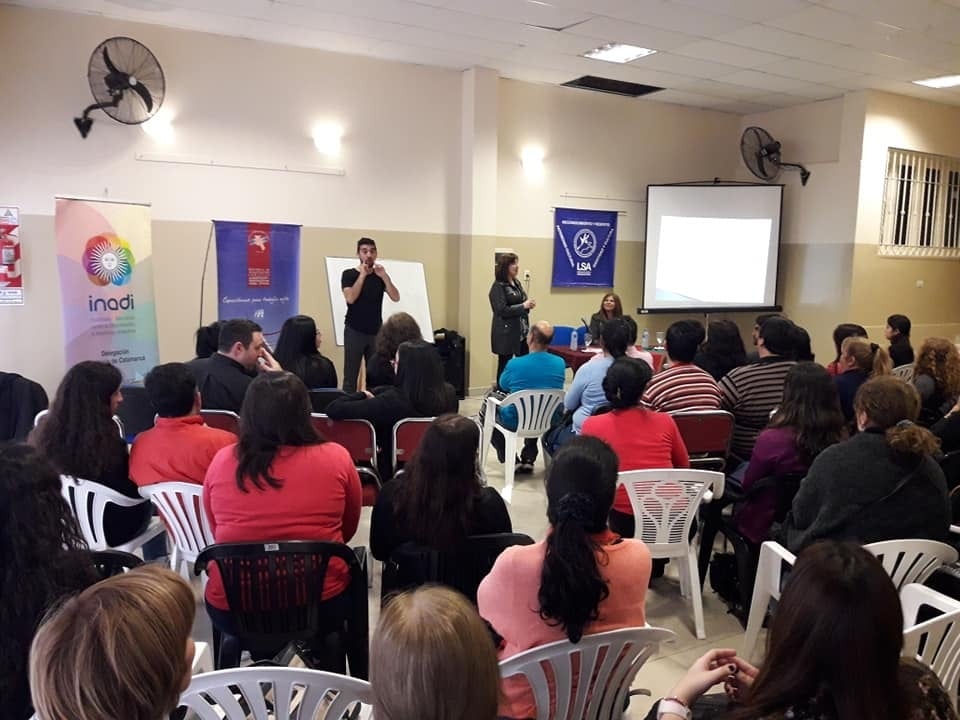 Las disertaciones fueron encabezadas por la Asociacion Catamarqueña de Sordos (ACASO), con la presencia de Noemí Sepúlveda, actual presidenta de la Asociación y la delegada del INADI María Luisa Moreno, quien en su charla sobre discriminación puso el foco en la discriminación hacia las personas con discapacidad.