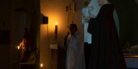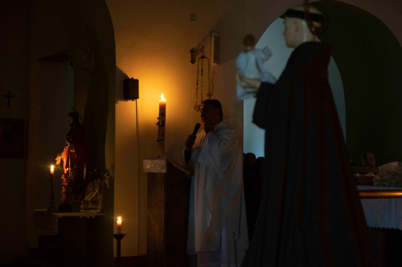 La procesión con la imagen del Santo Patrono partió desde el cementerio Virgen del Carmen hasta el templo, donde se celebró la Santa Misa, presidida por el párroco, Pbro. Juan Olmos. Gran parte de la celebración eucarística se realizó a media luz, con velas, debido al corte de energía que afectó a toda la provincia y el país.
