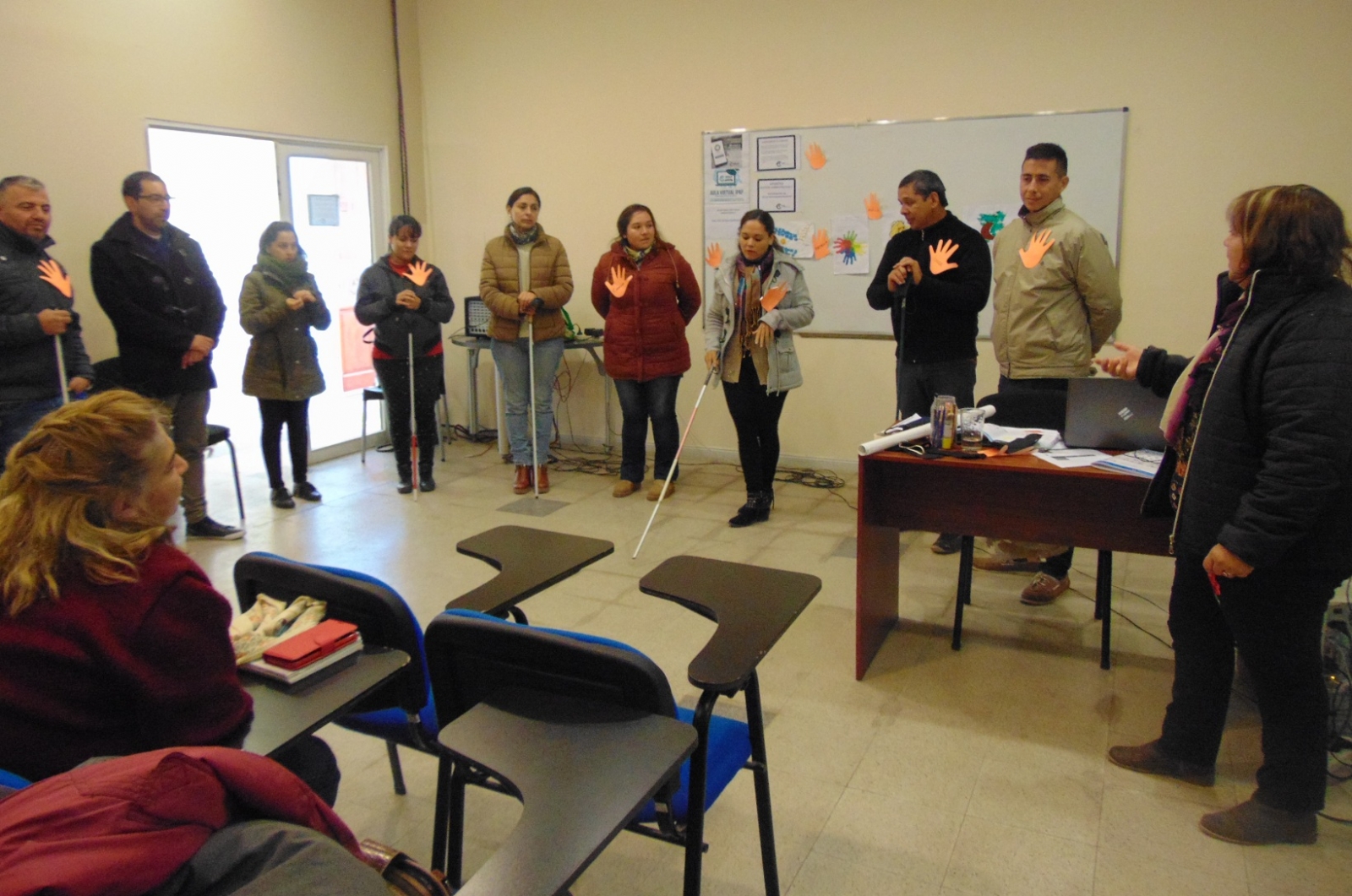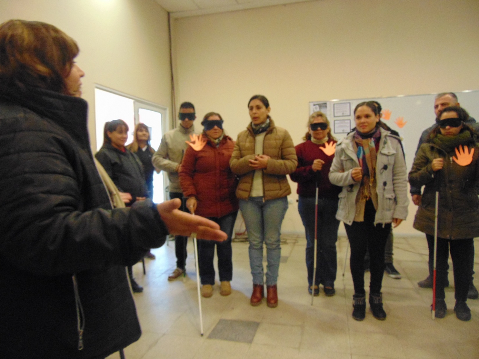 La capacitación estuvo a cargo de la profesora Patricia Villalba, especializada en Discapacidad Visual y docente de la Escuela Docente Especial Nº 998 “Santa Lucía de Siracusa”, quien propuso a los asistentes pautas concretas para comunicarse, guiar y ayudar a personas con discapacidad visual.